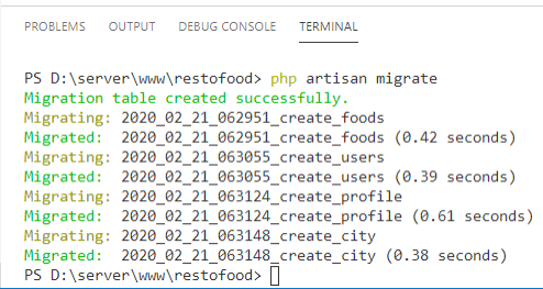 });php artisan make:migration createFoods CreateUsers