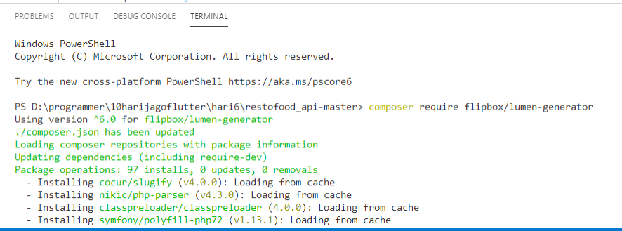 composer create-project --prefer-dist laravel/lumen restofoodMembuat Project Lumen Via create-project