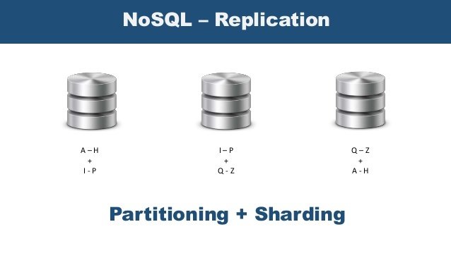 2.Portions of a database are written to multiple nodes so that if one node fails, another node contains a replica of the failed node’s data.