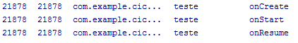 public class MainActivity extends Activity { @Override protected void onSaveInstanceState(Bundle saveInstanceState) { }@Override protected void onCreate(Bundle savedInstanceState) { super.onCreate(savedInstanceState); setContentView(R.layout.activity_main); log("onCreate"); } }
