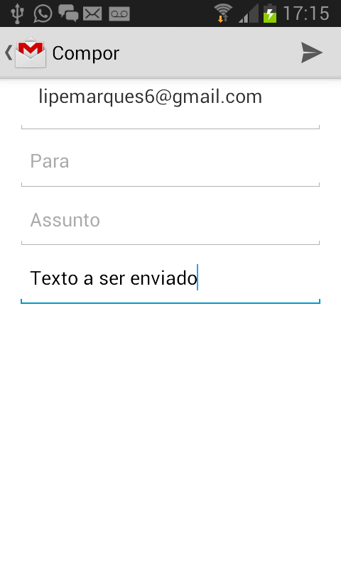 i.putExtra(Intent.EXTRA_TEXT, ("Texto a ser enviado");