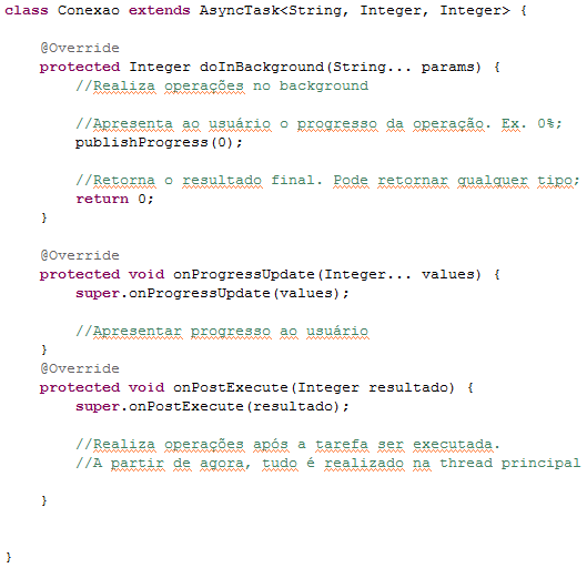 @Overrideprotected void onCreate(Bundle savedInstanceBundle){ super.onCreate(savedInstanceBundle); setContentView(R.layout.conectividade);}