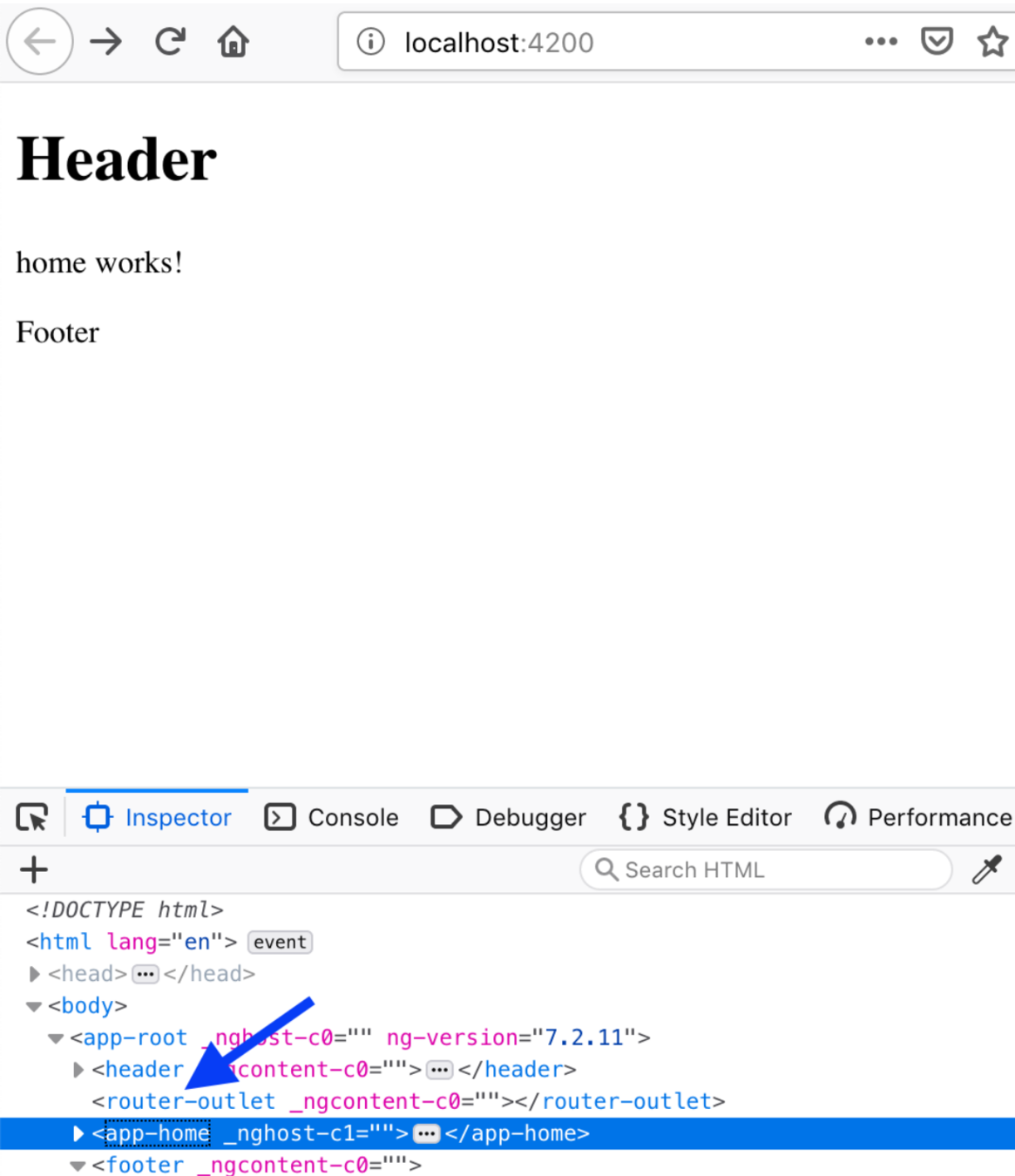 export class AppModule {}Es una directiva de la librería que se usa como un componente. Actúa como un placeholder que marca el sitio en el template donde el router va a mostrar los componentes.