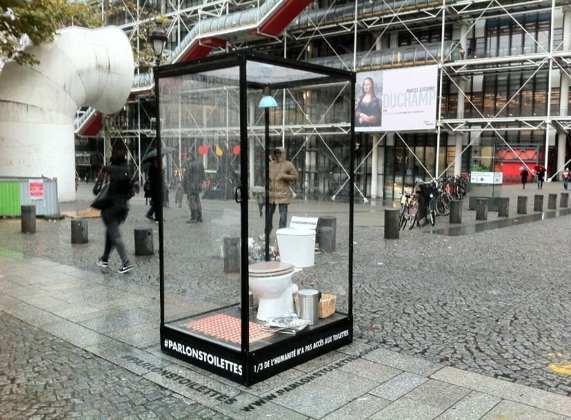 Le problème des toilettes n'épargne pas la France. «On estime à 2 millions le nombre de personnes qui ont un accès difficile à l'eau, et une centaine de milliers qui n'ont pas d'accès du tout», explique Kristel Malègue, coordinatrice de l'ONG Coalition Eau. «Même s'il n'existe pas de chiffres précis», déplore-t-elle. Avec le Secours Islamique France, l'organisation a lancé une pétition en ligne pour demander au gouvernement français d'augmenter de 40 millions d'euros l'aide publique au développement pour l'accès à l'eau et l'assainissement, reconnu comme drôle collectif d'ONG Coalition Eau et le Secours Islamique France ont installé depuis dimanche une cabine de toilettes transparente en plein cœur de Paris, sur l'esplanade du Centre Georges Pompidou.