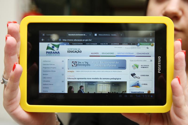 Programa Aluno Conectado: Em Pernambuco alunos do Ensino Médio receberam tablets híbridos (reúne as características de um PC convencional e um tablet tátil).