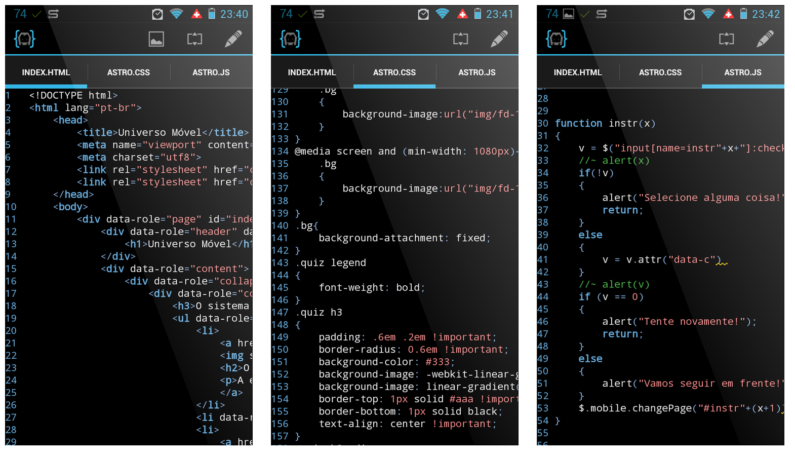 - Com o uso das “media queries” presentes no CSS3, podemos definir como o aplicativo irá se comportar em diversas plataformas, tornando-o compatível com toda a diversidade de dispositivos móveis e não-móveis presentes nas escolas brasileiras.