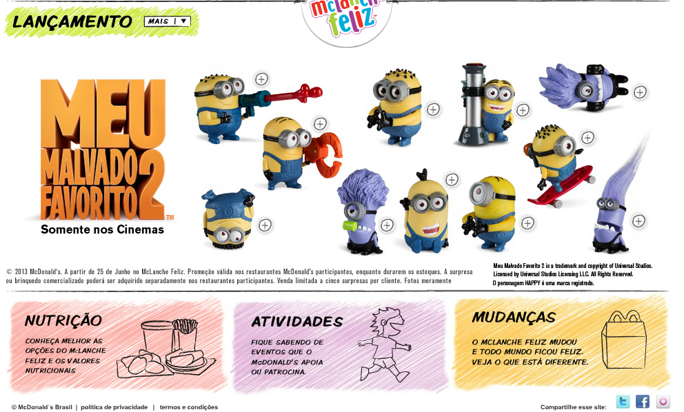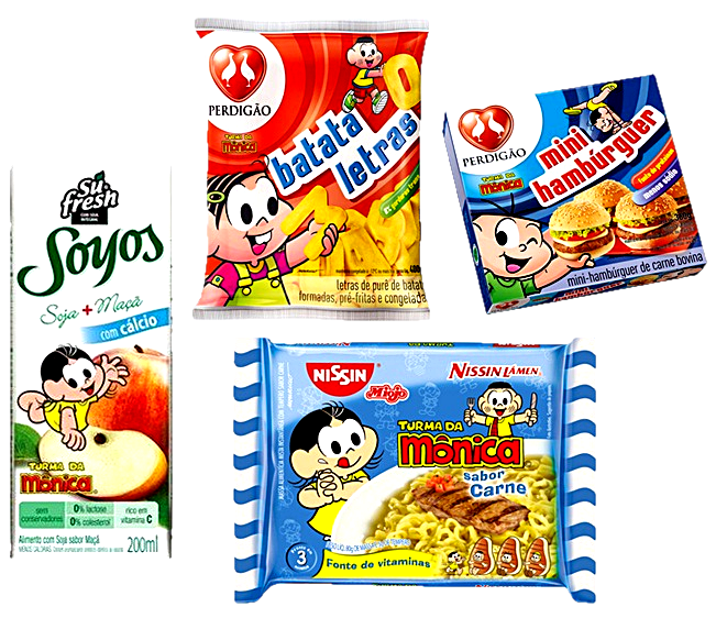 - Venda casada (produtos alimentícios + brinquedos) e produtos criados especialmente para o "lanche escolar.