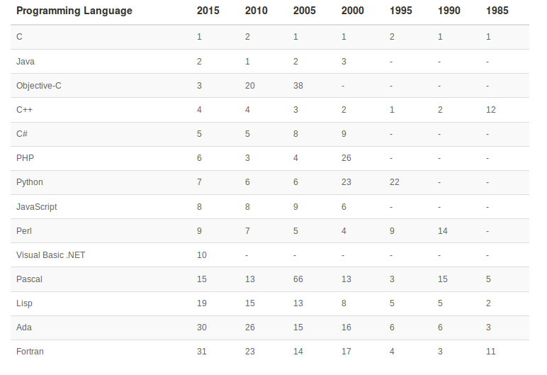 TIOBE Index for Long Term History