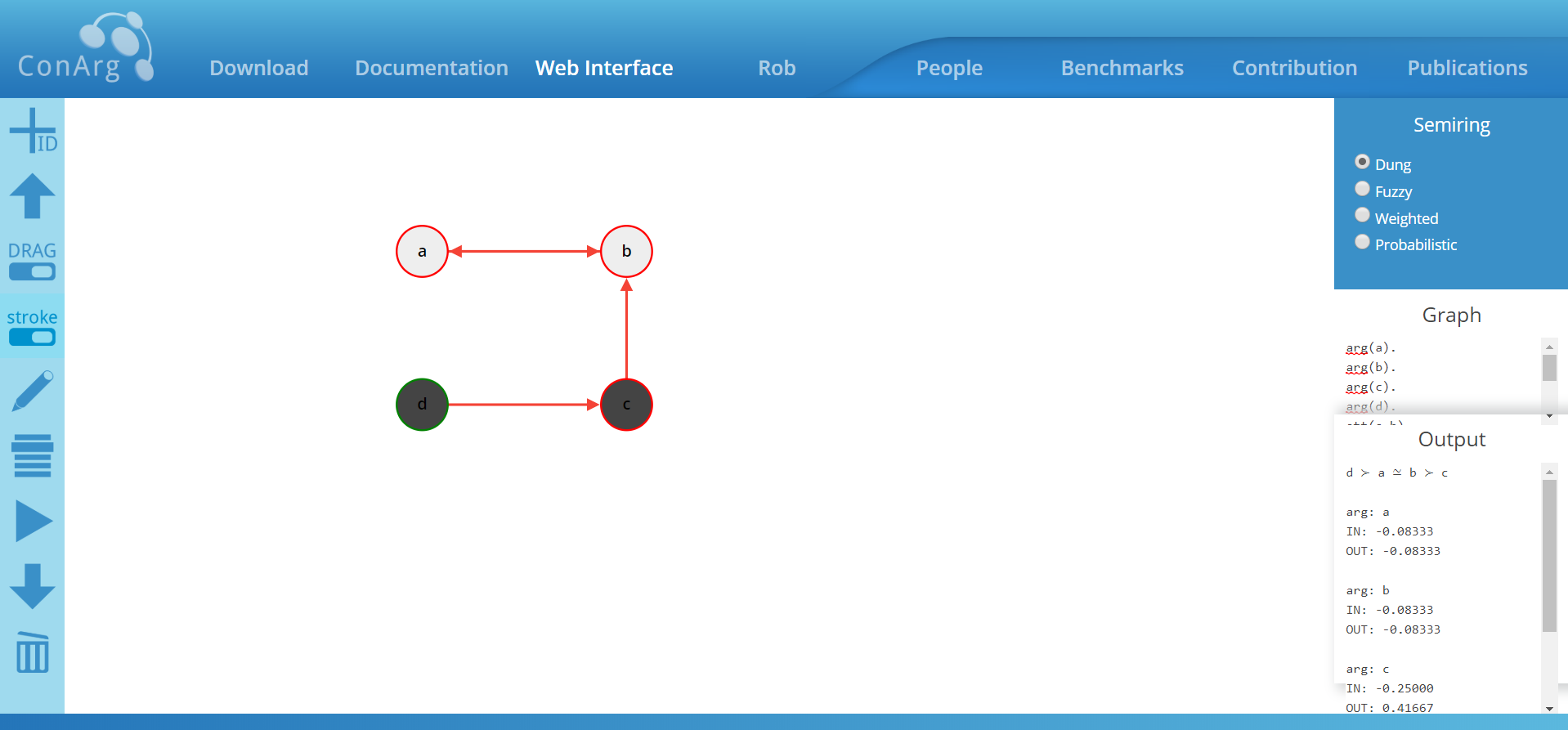 2. S. Bistarelli, F. Faloci, and C. Taticchi. Implementing ranking-based semantics in conarg: a preliminary report. ICTAI, 2019.