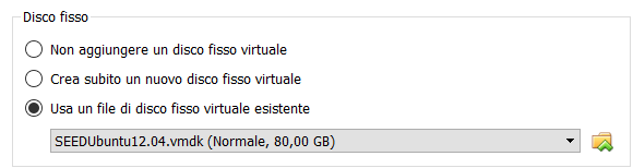 - Caricate come disco: SEEDUbuntu12.04.vmdk