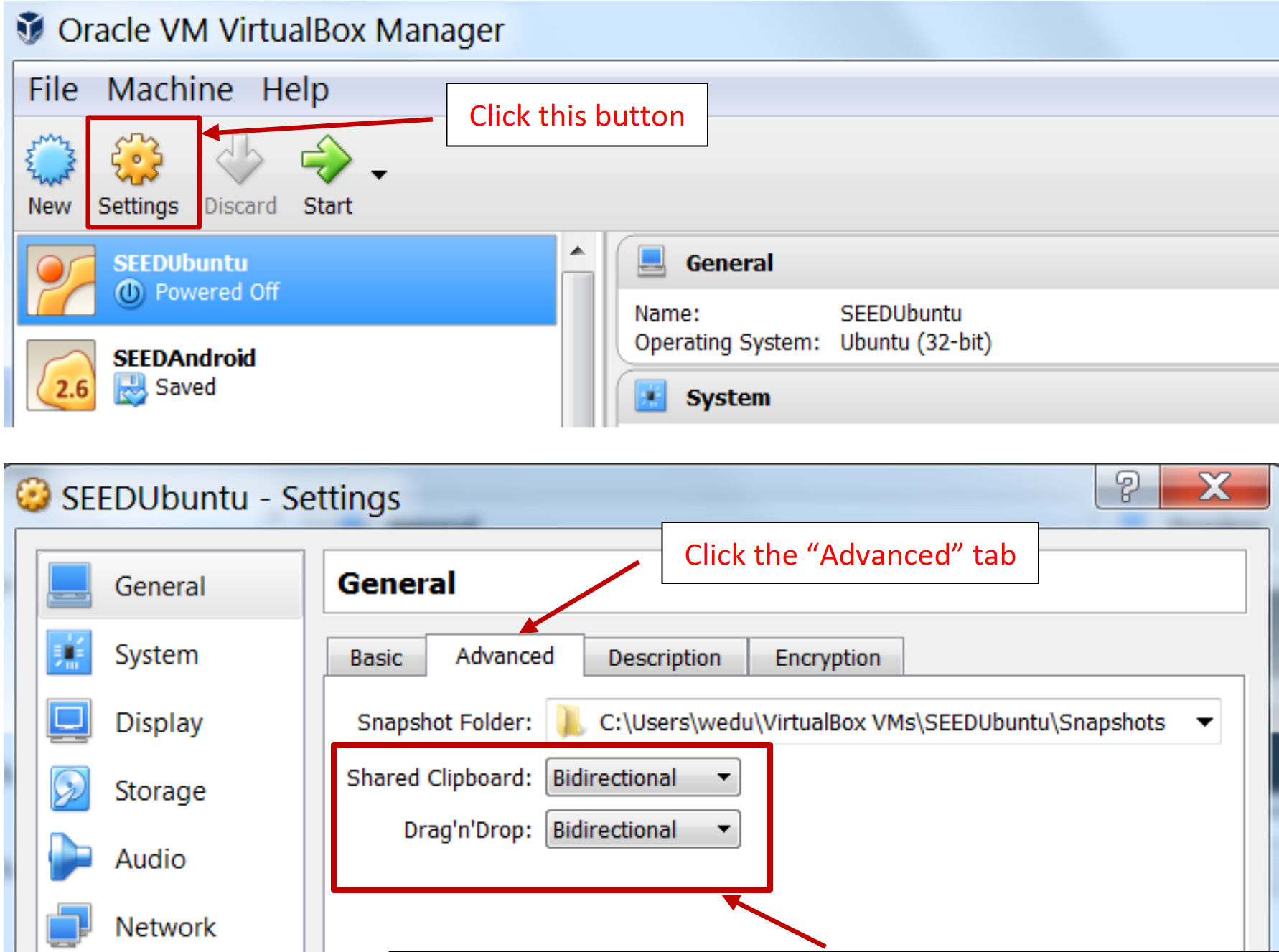 Password: seedubuntu