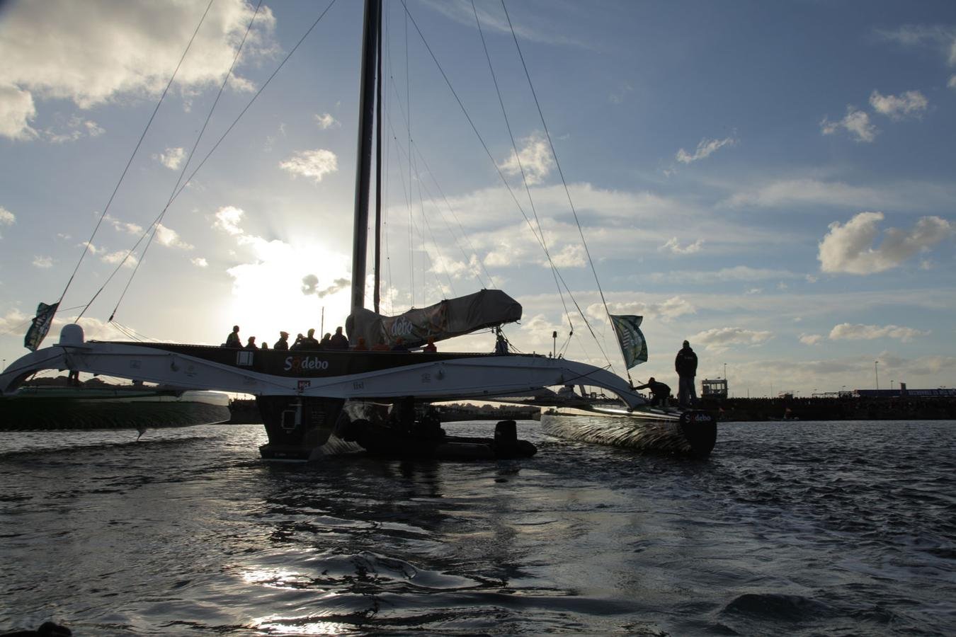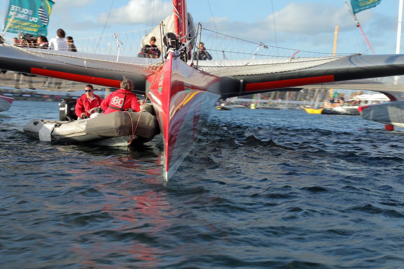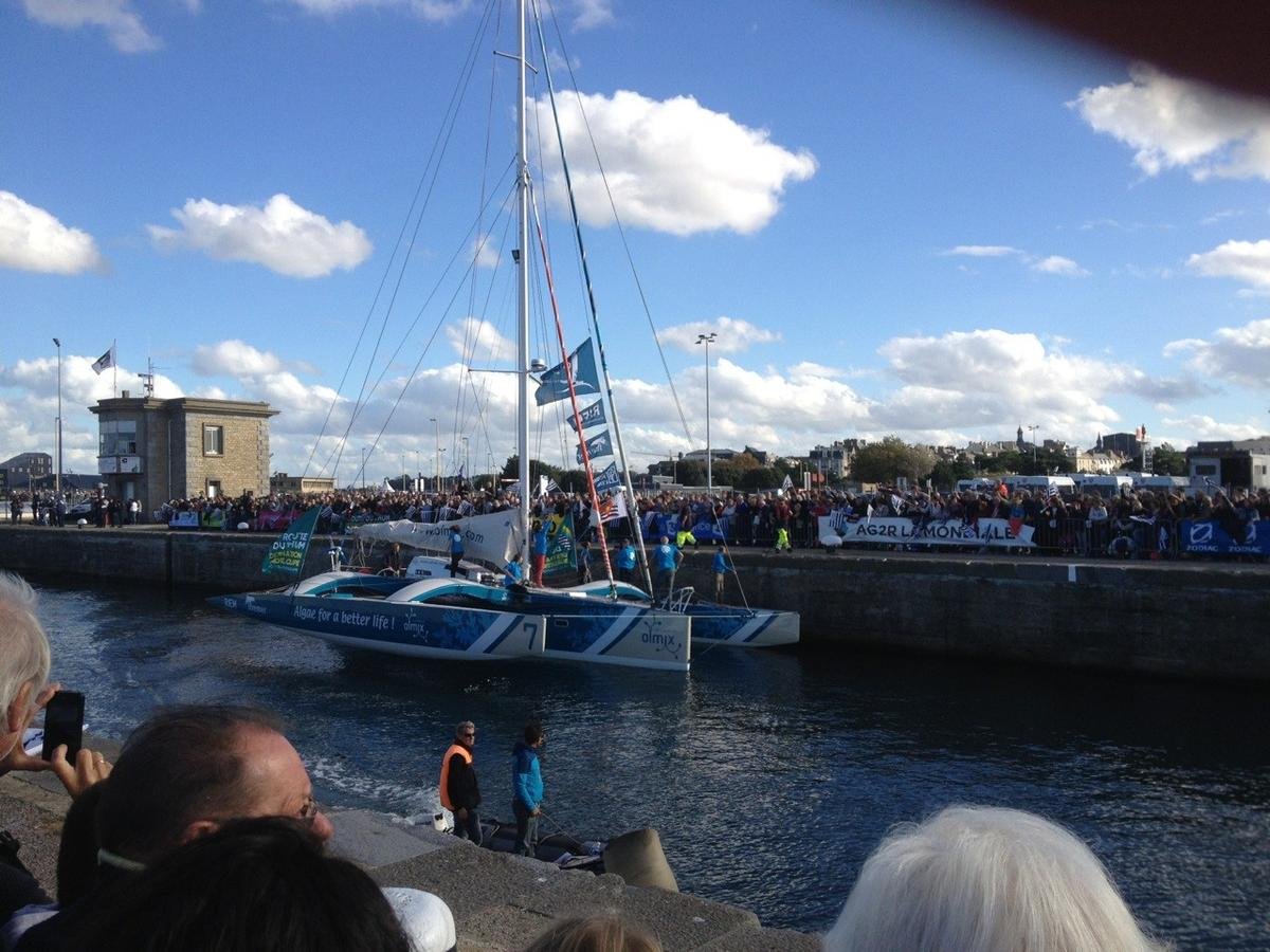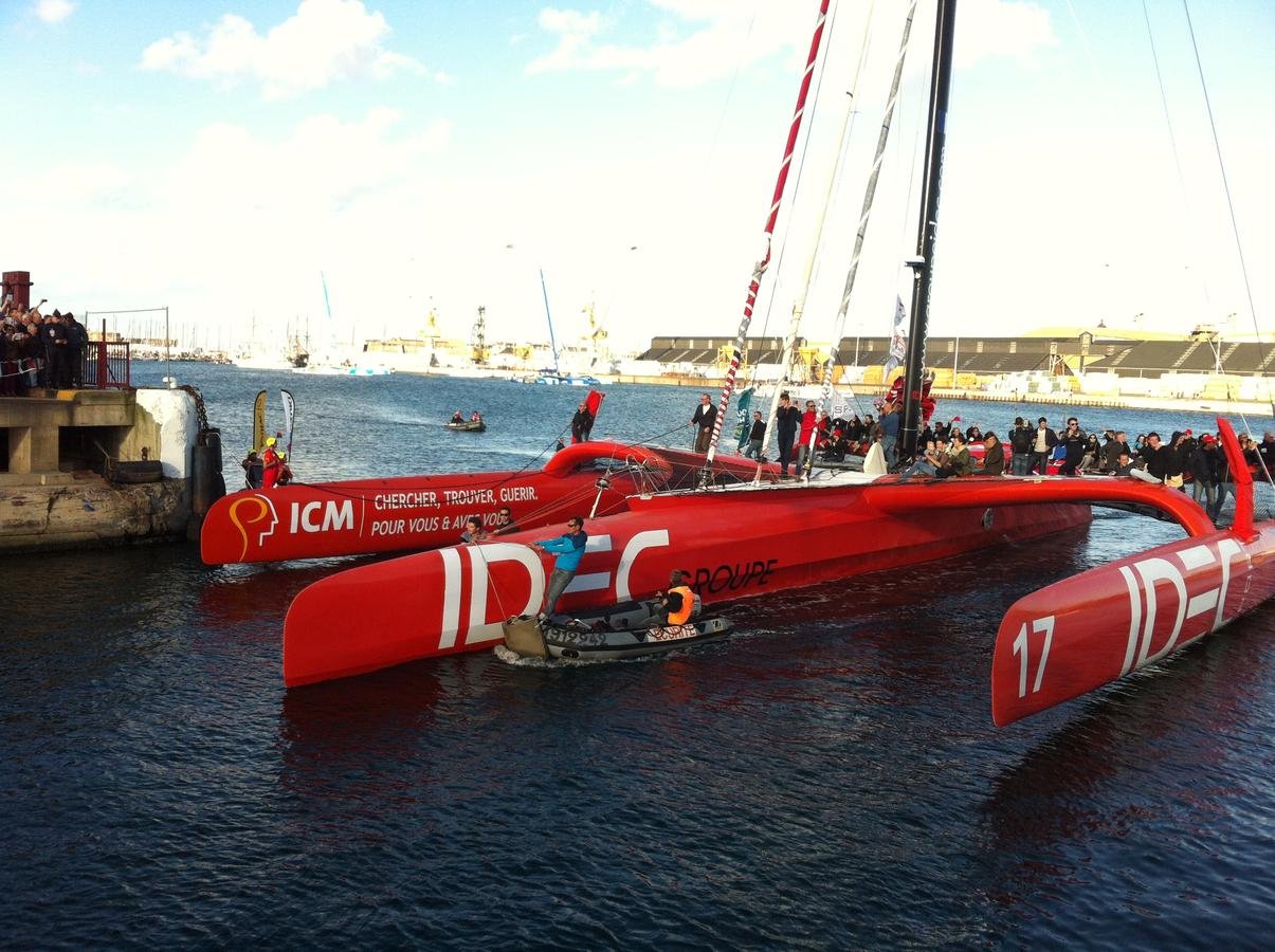 IDEC, le multicoque de Francis Joyon à l'entrée du sas