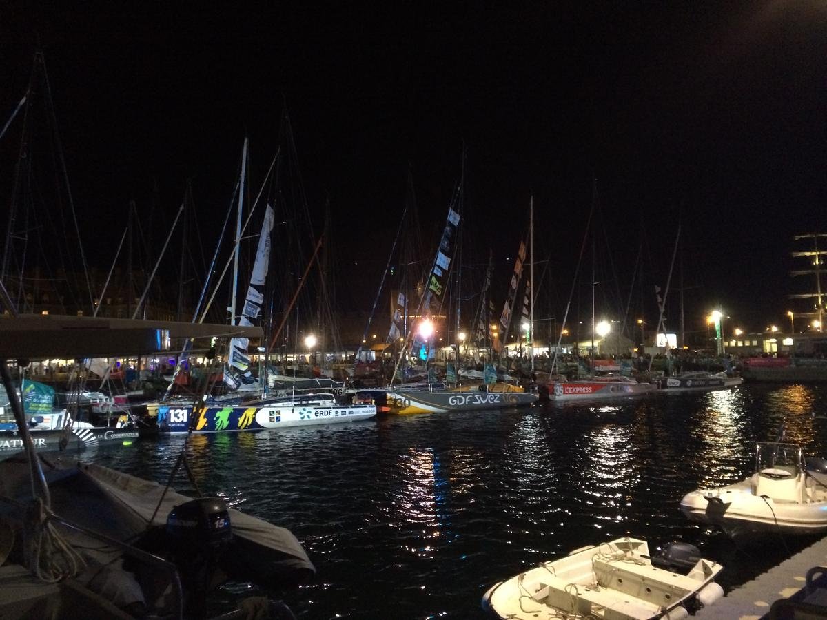 La nuit est retombée sur Saint-Malo . Les class40 quitteront les bassins dimanche