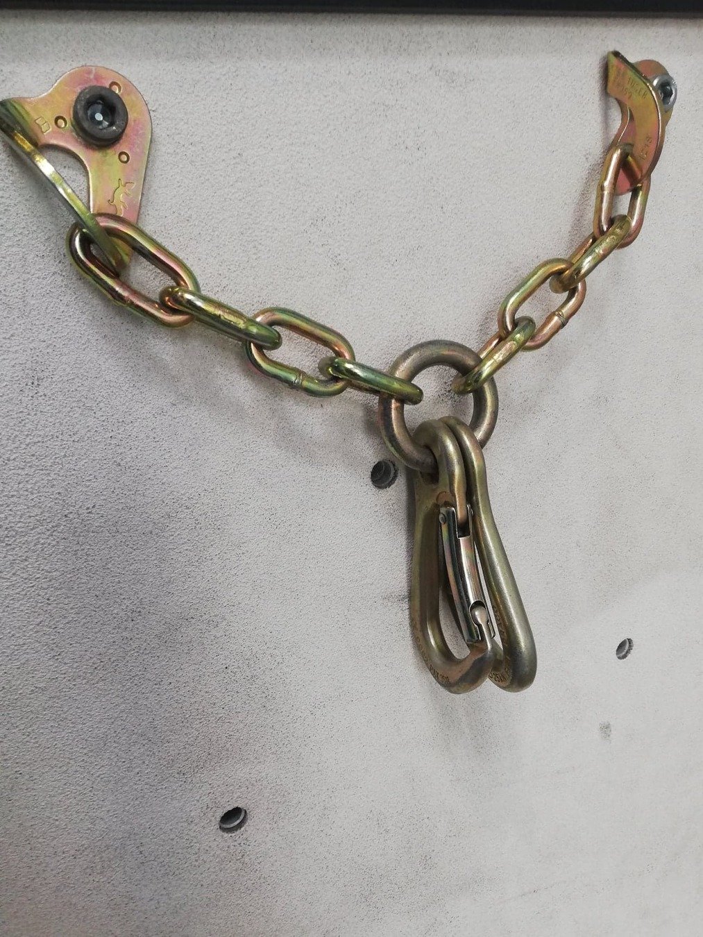 Deze zijn de ijzeren structuren die in de muur hangen. Deze dienen om de setjes in te hangen tijdens het voorklimmen. Je hebt verschillende soorten. In de zaal gebruiken we plaketten.