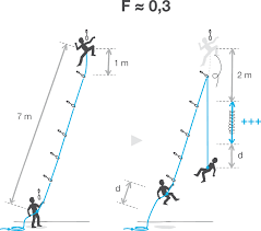 Als de klimmer valt krijgt de zekeraar een stoot richting het eerste setje. De zekeraar: