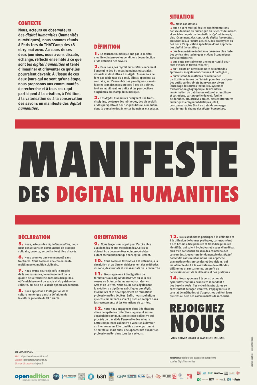 “…désignent une transdiscipline, porteuse des méthodes, des dispositifs et des perspectives heuristiques liés au numérique dans le domaine des Sciences humaines et sociales.”