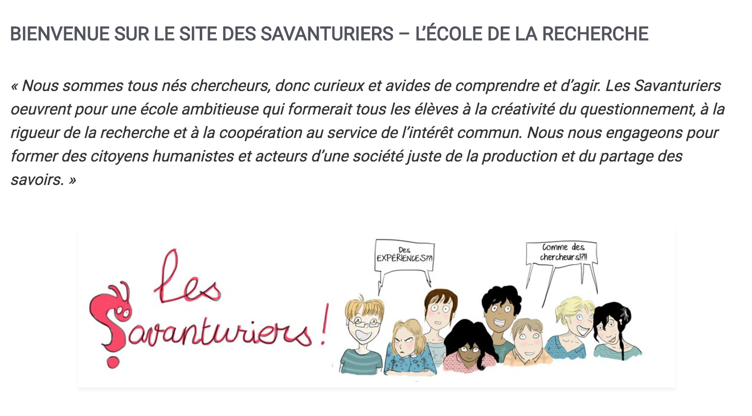 “…progrès de la connaissance, (au) renforcement de la qualité de la recherche dans nos disciplines, et (à) l’enrichissement du savoir et du patrimoine collectif…”