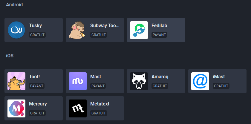 Bonus : permet de s'abonner à d'autres réseau comme Peertube, Mobilizon...