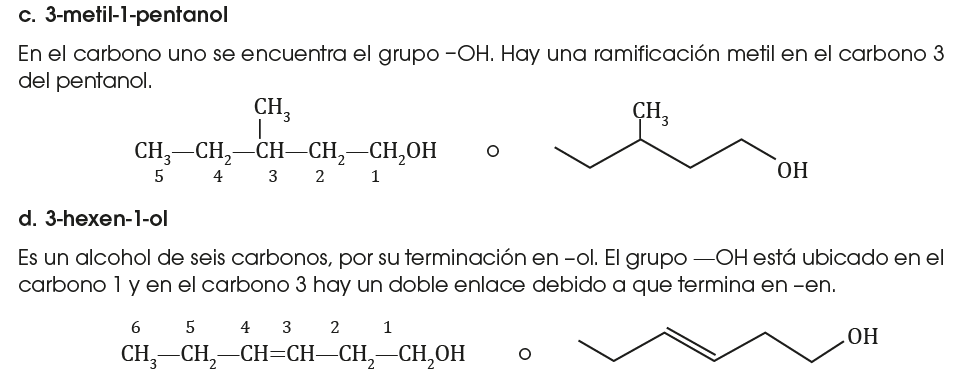 • El nombre del alcohol se deriva de la cadena más larga que posee el grupo —OH, más la terminación -ol.