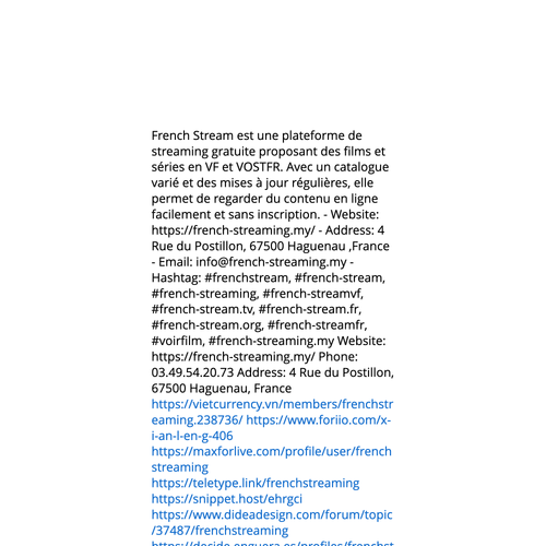 Website: https://french-streaming.my/ French Stream est une plateforme de streaming gratuite proposant des films et séries en VF et VOSTFR. Avec un catalogue varié et des mises à jour régulières, elle permet de regarder du contenu en ligne facilement