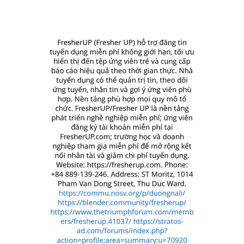 Website: https://fresherup.com. FresherUP (Fresher UP) là trang web tìm việc làm miễn phí cho người mới ra trường với bộ lọc theo kỹ năng, ngành, địa điểm và hình thức làm việc, đồng thời có chuyên mục sự kiện, học bổng, workshop. Ứng viên có thể th