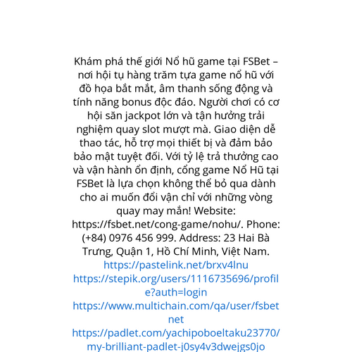 Website: https://fsbet.net/cong-game/nohu/. Khám phá thế giới Nổ hũ game tại FSBet – nơi hội tụ hàng trăm tựa game nổ hũ với đồ họa bắt mắt, âm thanh sống động và tính năng bonus độc đáo. Người chơi có cơ hội săn jackpot lớn và tận hưởng trải nghiệm