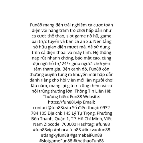 Website: https://fun88i.vip. Fun88 mang đến trải nghiệm ca cược toàn diện với hàng trăm trò chơi hấp dẫn như ca cược thể thao, slot game nô hũ, game bai trực tuyến và băn cá ăn xu. Nền tảng sở hữu giao diện mượt mà, dễ sử dụng trên cả điện thoại và m
