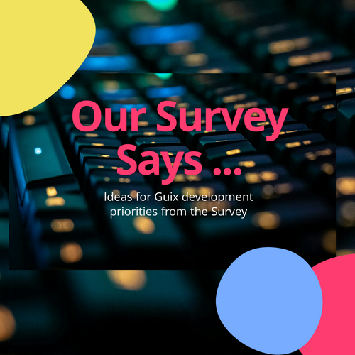 The Guix User and Contributor Survey (2024) suggests 5 guix development priorities. Ideas for discussion at Guix Days!