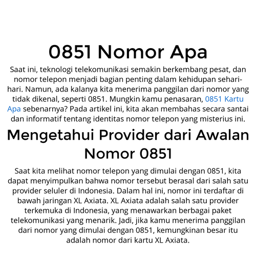 Bagi Anda yang tertarik ingin tahu lebih lanjut perihal 0851 kartu apa nomor daerah mana, tidak perlu risau karena operator pemiliknya adalah Telkomsel As.