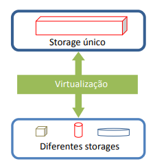 Dentro do contexto de um sistema de armazenamento, existem três tipos principais de virtualização de armazenamento: