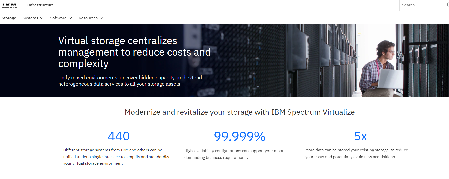 Com a virtualização de armazenamento da IBM, todos os seus ativos de armazenamento podem trabalhar juntos de maneira consistente.