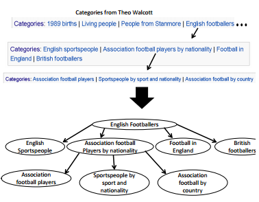 Servendosi del grafo presente in Wikipedia, per ogni Entità viene costruito il relativo albero di Categorie; i livelli più bassi conterranno Topic più generici.