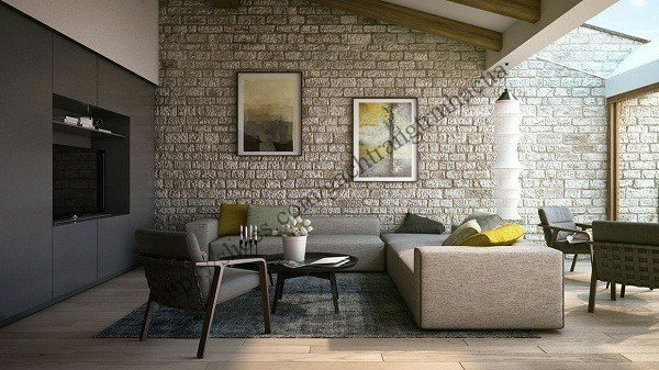 Gạch ốp tường phòng khách giả đá tuyệt đẹp