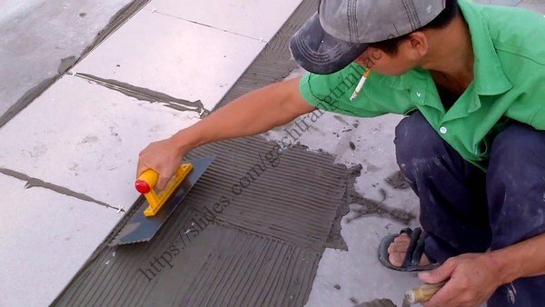 Bước 9: Chít xi măng vào các mạch: Sau khi lát ít nhất 3 giờ bạn mới nên chít mạch, như vậy mới đảm bảo độ cứng để bạn có thẻ đi nhẹ trên đó. Dùng các mũi nhọn đưa lượng vữa vừa đủ vào các mạch cần chít, sử dụng chổi lông quét nhẹn giúp tạo độ mịn cho mạch chít sau đó dùng bay hớt lượng vữa thừa, không để vữa bám khô trên mặt gạch sau khi chít.