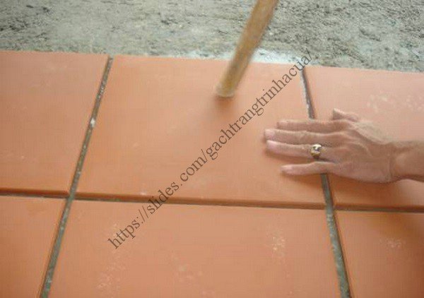 Gõ nhẹ cho gạch vữa tràn đều kết dính với viên gạch
