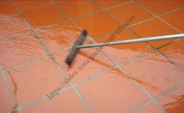 Vệ sinh bằng nước sau khi vữa trét mạch khô