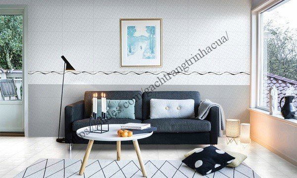 Bên cạnh đó, sử dụng gạch ốp tường còn là một lựa chọn với mức độ thẩm mỹ vượt trội hơn nhiều so với sơn. Đối với sơn, bạn chỉ có những màu sắc trong bảng màu, còn gạch ốp bạn có thêm những lựa chọn về hoa văn trang trí khác nhau giúp tạo nên điểm nhấn cho căn phòng. Bên cạnh đó, gạch có tuổi thọ cao, không bị mốc, ố, không bị bong tróc hoặc phai màu như các chất liệu trang trí khác giúp bạn lưu giữ được những vẻ đẹp một cách lâu bền. Mỗi hoa văn trang trí lại mang đến những phong cách riêng cho ngôi nhà, sự trẻ chung, hiện đại hay sự giản dị mộc mạc… đều có được với những mẫu gạch ốp chân tường phòng khách. Với mức độ thẩm mỹ như vậy mà nhiều căn nhà hiện đại còn chọn lựa ốp gạch toàn bộ tường phòng khách bạn nhé.