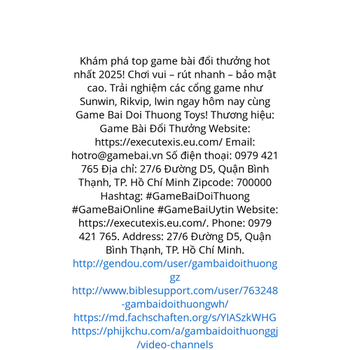 Website: https://executexis.eu.com/. Khám phá top game bài đổi thưởng hot nhất 2025! Chơi vui – rút nhanh – bảo mật cao. Trải nghiệm các cổng game như Sunwin, Rikvip, Iwin ngay hôm nay cùng Game Bai Doi Thuong Toys! Thương hiệu: Game Bài Đổi Thưởng