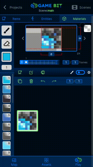 Materials are blocks which you can create your maps. They can have different types of designs and customizable properties.