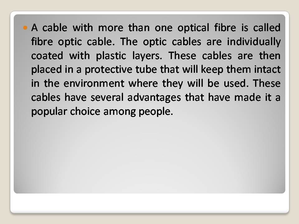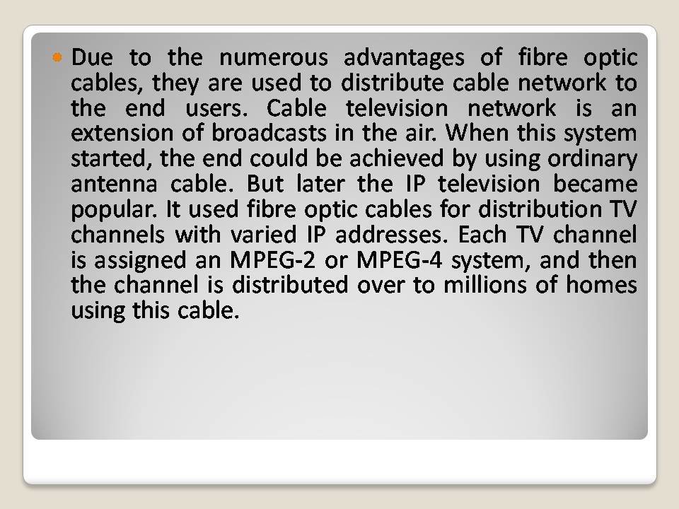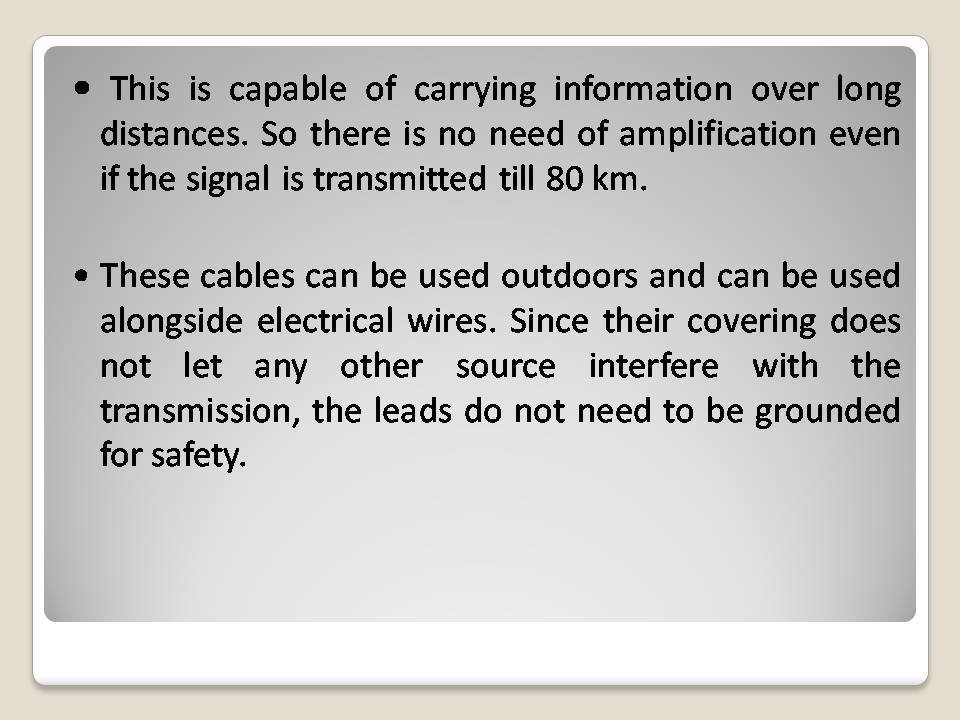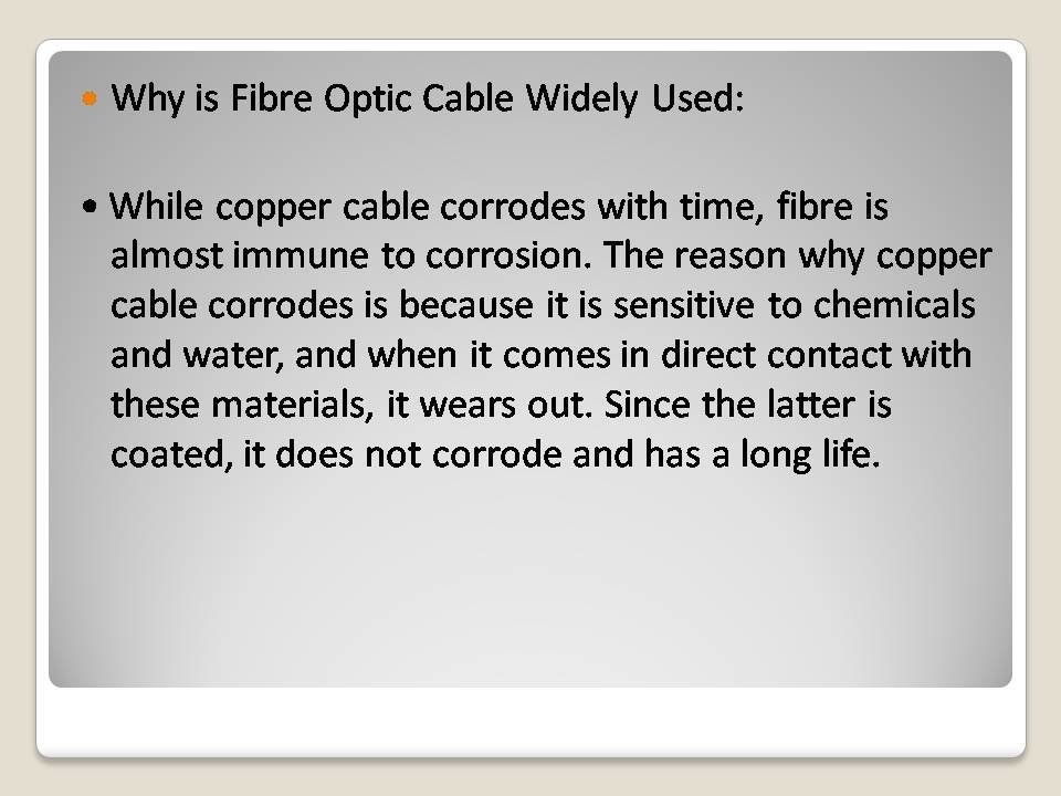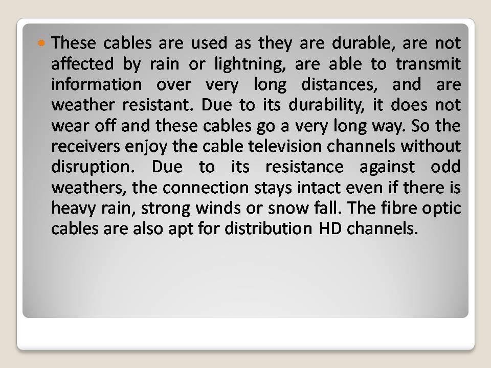 These cables are used as they are durable, are not affected by rain or lightning, are able to transmit information over very long distances, and are weather resistant. Due to its durability, it does not wear off and these cables go a very long way.