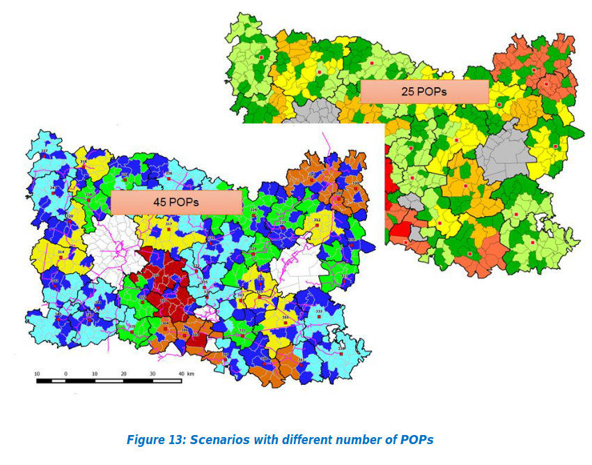 - decisiones sobre la conectividad (qué localizaciones servirán cada zona)