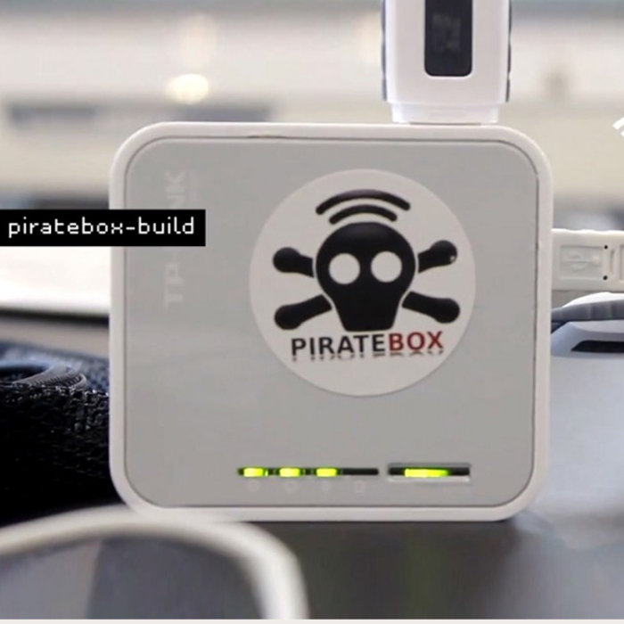 A _“caixa pirata”_ é um dispositivo móvel autônomo de troca e colaboração. Seu nome foi inspirado pelas ‘rádios piratas’ e pelos movimentos de cultura livre ao redor do mundo. Ela foi feita para conectar pessoas presentes em um mesmo espaço físico, criando uma rede sem fio de troca de arquivos, como imagens, vídeo, áudio, documentos e outros conteúdos digitais fora da internet. Em uma época em que o acesso a informação digital está cada vez mais presa em jardins murados, a caixa-pirata representa uma semente de resistência e anonimato.