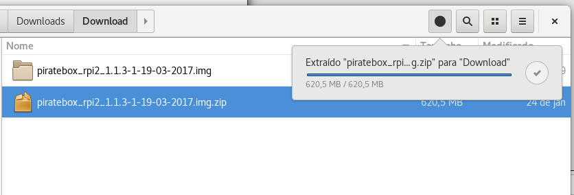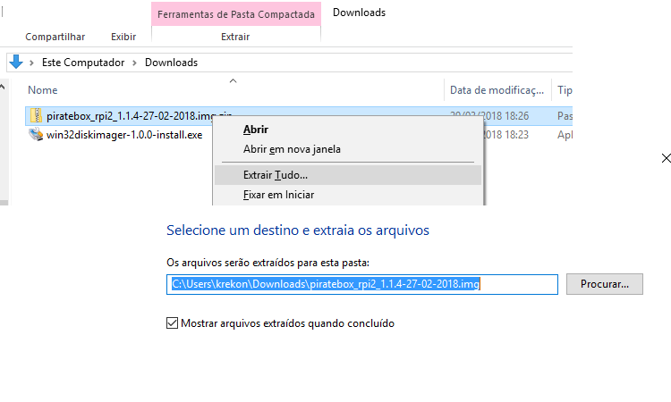 Passo 1 – Extrair o arquivo baixado da Piratebox