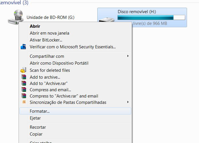 IMPORTANTE: O seu cartão tem que estar formatado com uma única partição FAT32 (Entenda a partição como uma fatia). Caso não esteja, abra o 'Meu computador', clique com o botão direito no dispositivo e escolha 'Formatar...'. ESSE PROCESSO APAGA TODOS OS DADOS DO CARTÃO.