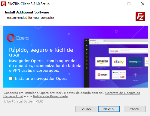 7. Agora é preciso desmarcar a opção de instalar o navegador Opera.
