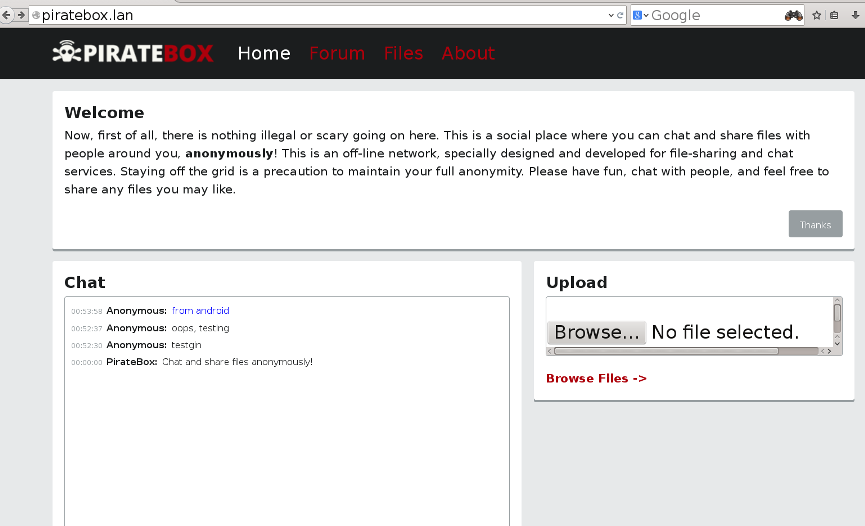 Você pode encontrar mais informações sobre esse projeto em: http://piratebox.cc