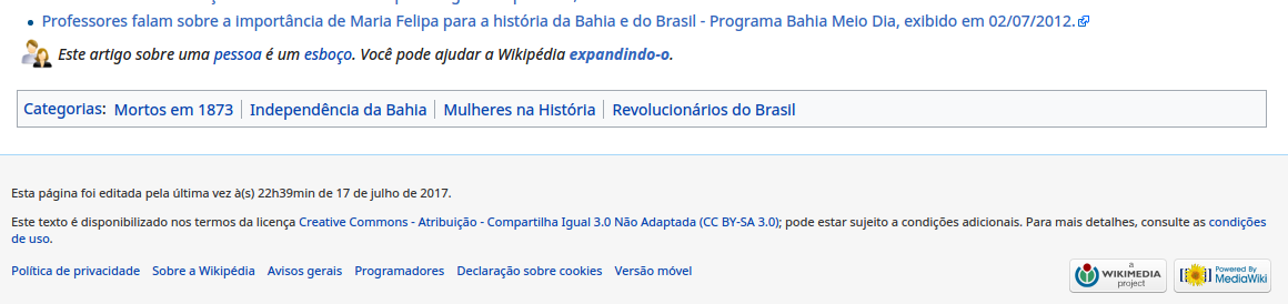 Se não estiver completo, coloque o aviso de Esboço