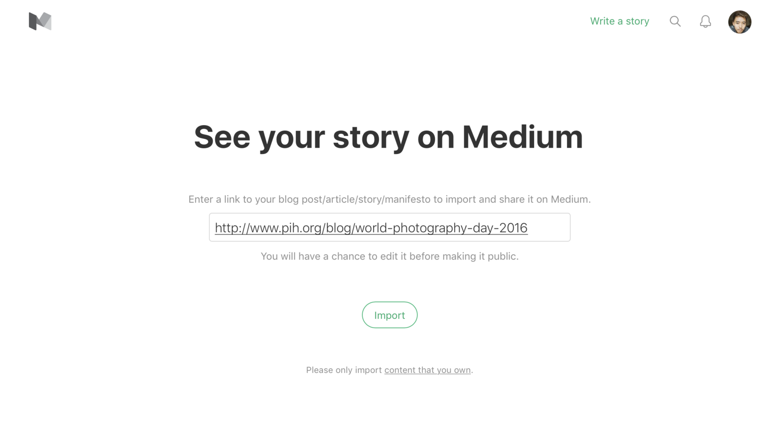 Import PIH articles to Medium