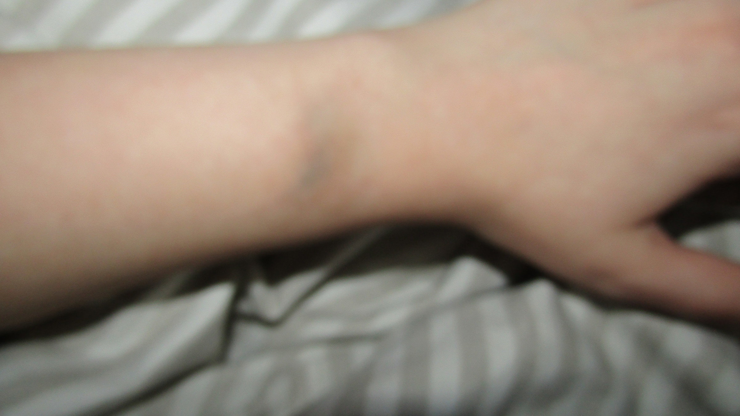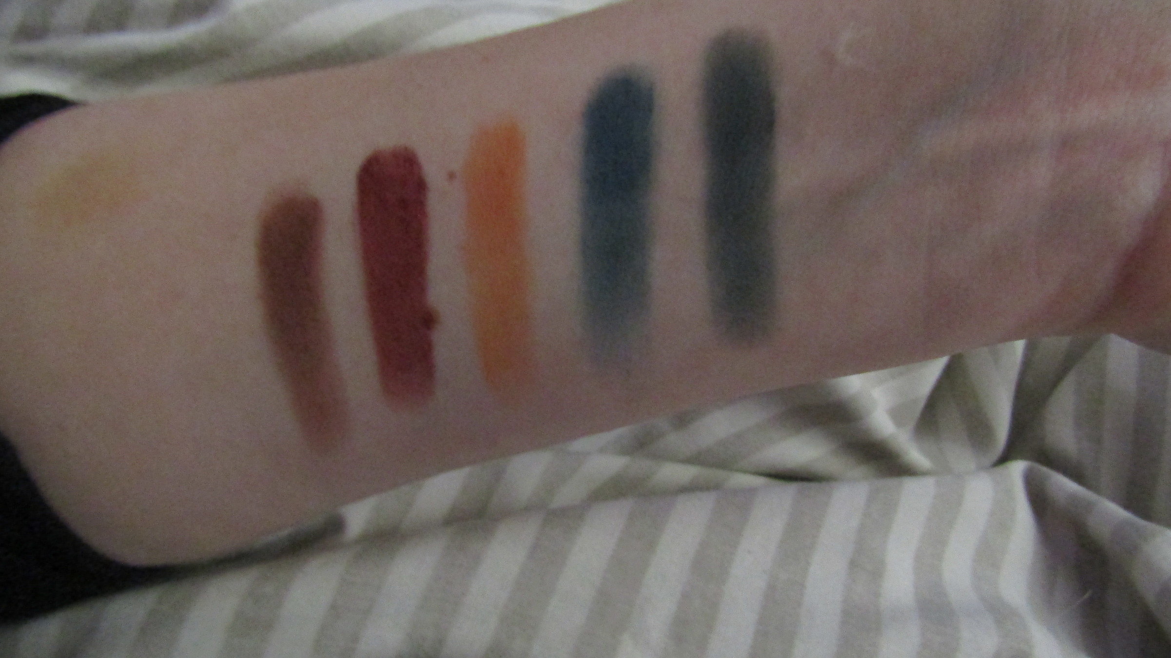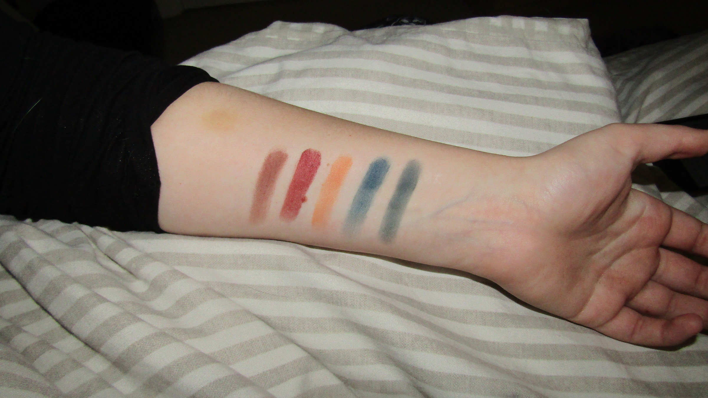I have utilised this eyeshadow palette to create the illusion of a small bruise on my left arm.