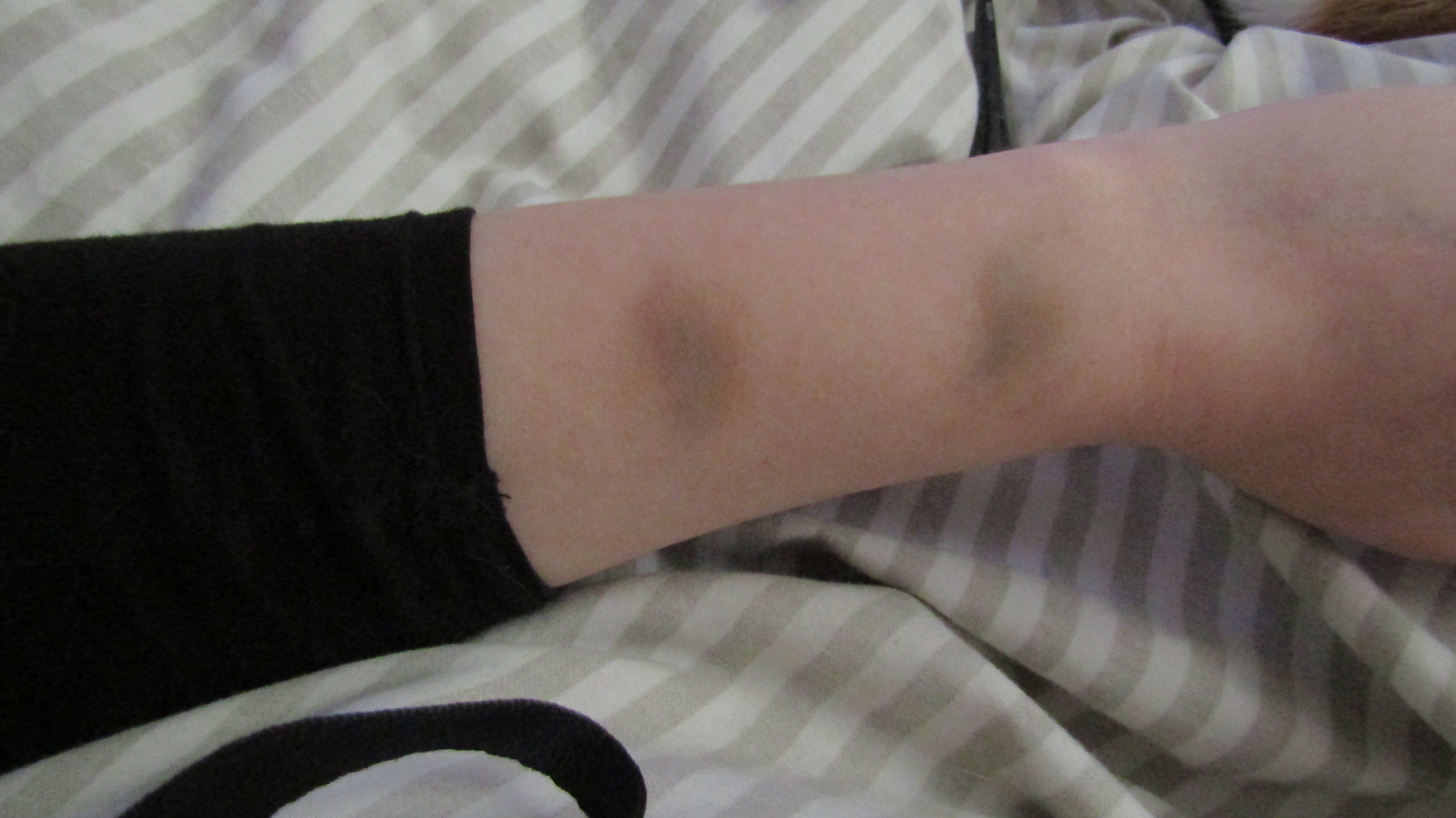 I have used specific colours to create the illusion of a bruise on the top half of my left arm. Through watching videos on Youtube and searching on Google what colours under-tone the mark, I chose colours similar to those I saw.